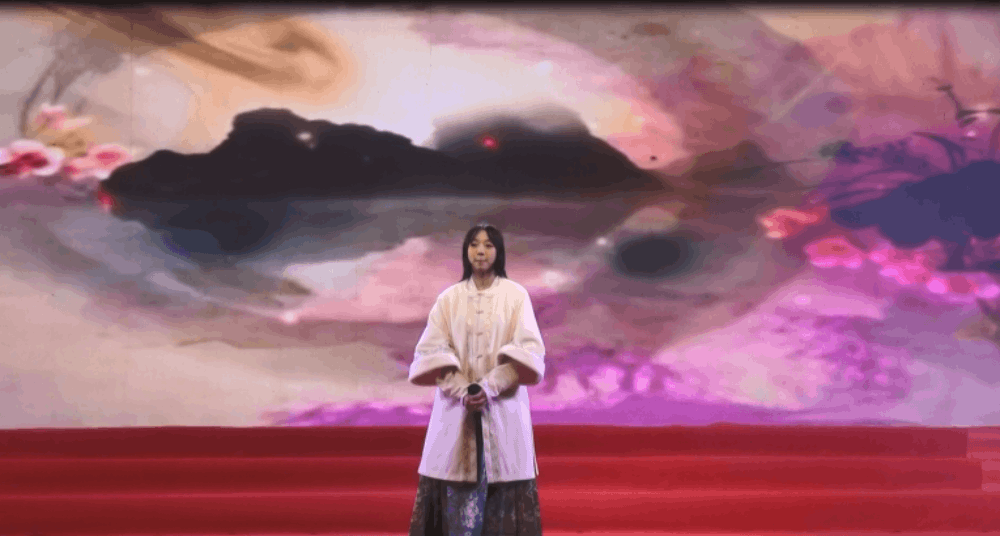 高二年级学生苏方依然、吴何铃、王可妍、严加梦的舞蹈《山鬼》——袖若流水清泓,裙如荧光飞舞,纤腰灵动,回眸浅笑,琴棋书画自成风景,千娇百媚各展风采。