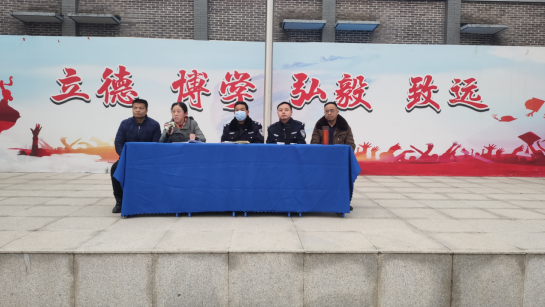 朋兴乡派出所刘警官,龙警官,校领导熊华,范颖波出席,全校两百多名学生参加。会议由学工处主任刘建军主持。