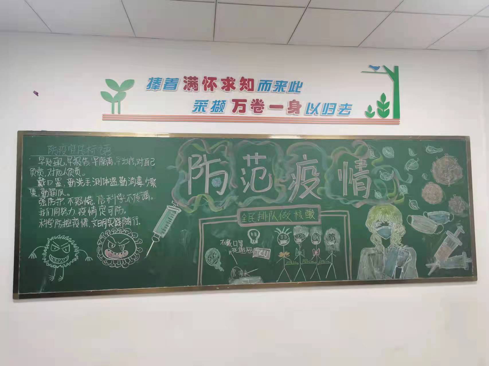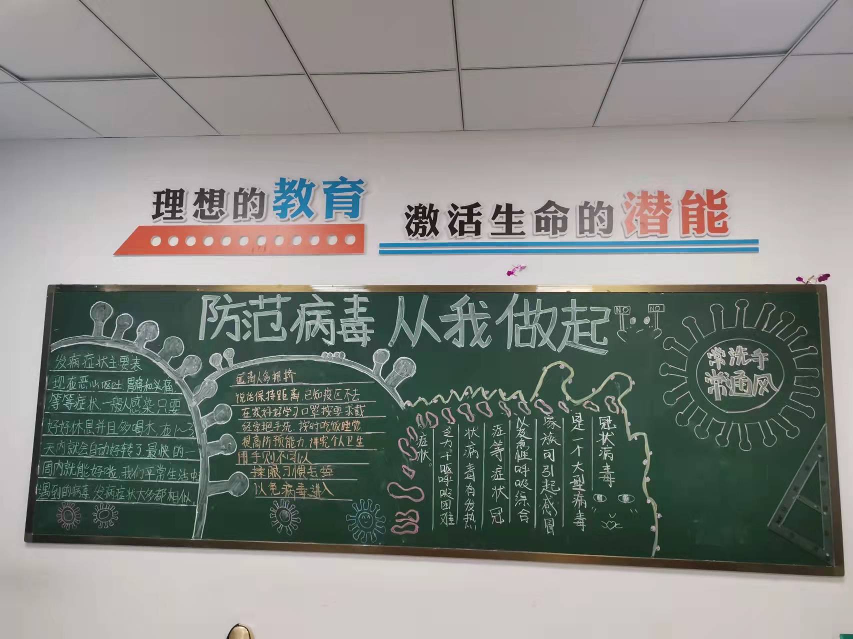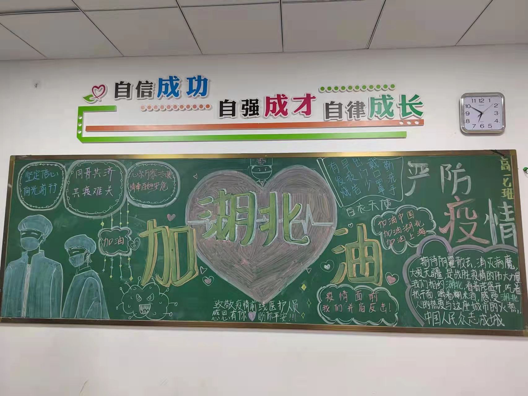 为进一步增强学生防控新冠肺炎的意识,强化学生对新冠肺炎疫情防控知识的了解,各班积极参与,精心准备,紧扣疫情防控主题,创作出一幅幅主题鲜明、内容丰富、图文并茂、形式新颖的黑板报作品。