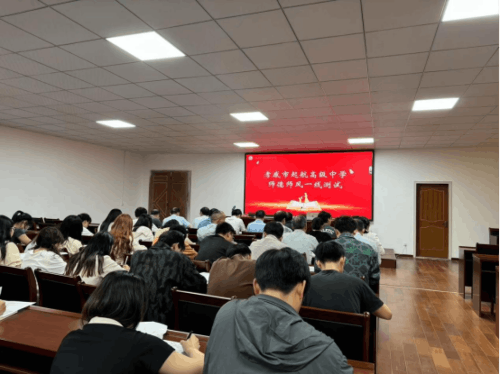 会议最后,全体教职工认真答写孝感市起航高级中学师德师风一线测试。