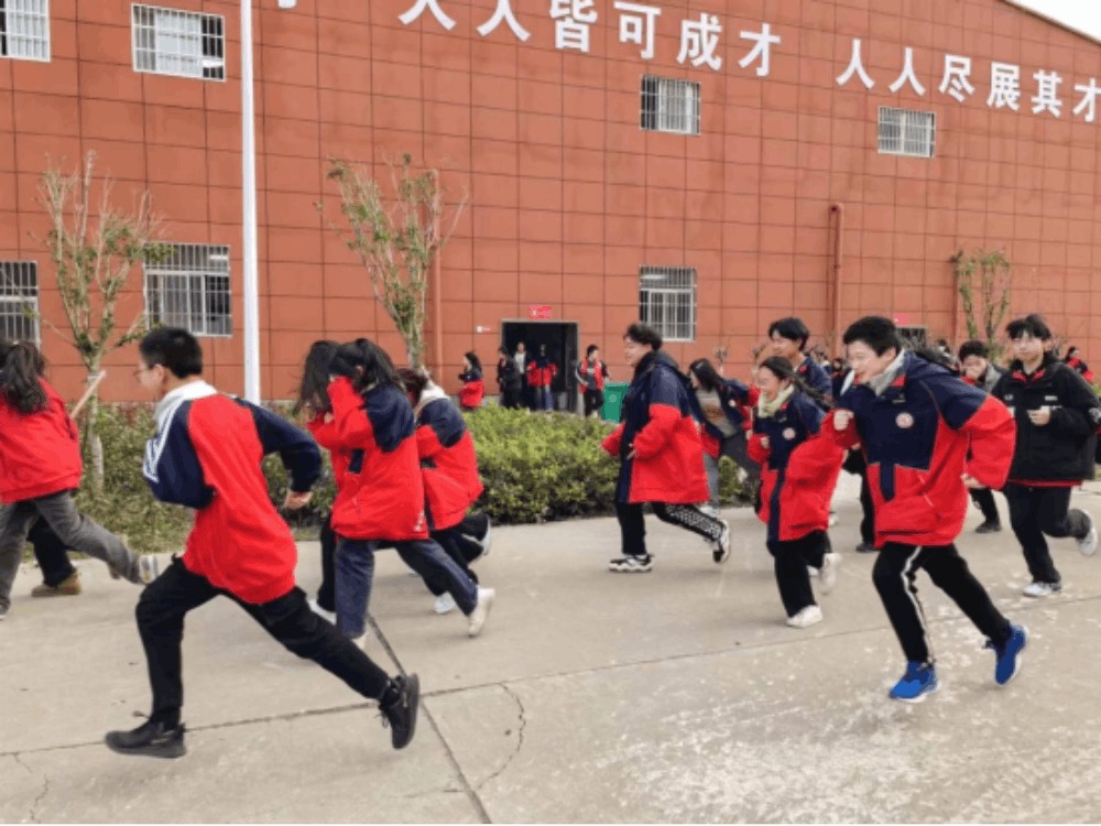 下午17:10,随着一阵急促的哨声,同学们迅速反应,按照预定方案蹲下身准备撤离,随后,第二声哨声响起,紧急疏散开始,同学们在老师的指导下,按照预定的安全路线,有序地离开教室,他们捂住口鼻、弯腰俯身、贴墙小跑,沿着疏散线路快速、有序撤离到学校操场。各班老师立即清点人数,确保无一人遗漏。整个疏散过程有条不紊、井然有序,达到了预期效果。