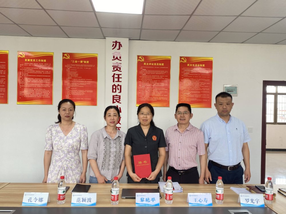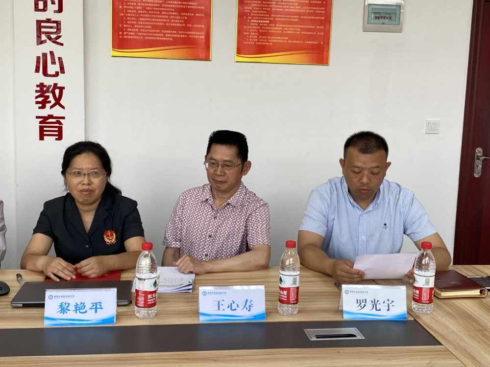 第一项:学校范校长为孝感市法院少审庭法官黎艳平颁法治副校长聘书。
