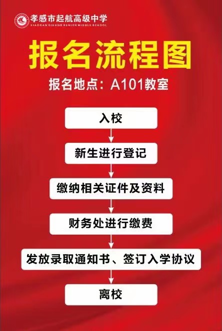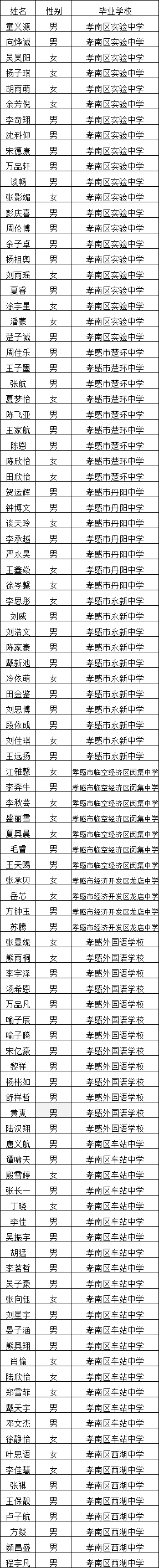 接市教育局中招委通知,孝感市起航高级中学2023年高一新生录取工作已经完成,请以下同学根据报到流程,带好准考证或身份证,按时到校报到缴费,领取录取通知书。