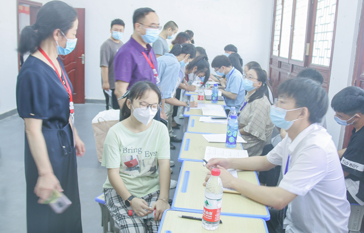 为落实全省秋季开学会议精神,根据孝感市教育局关于学校秋季开学疫情防控工作要求,保障全校师生员工健康安全。我校要求新生全员接种新冠疫苗,并持近期核酸检测报告来校报到。校门口由工作人员指引学生家长扫健康码和行程码,并测量体温。