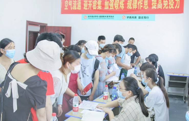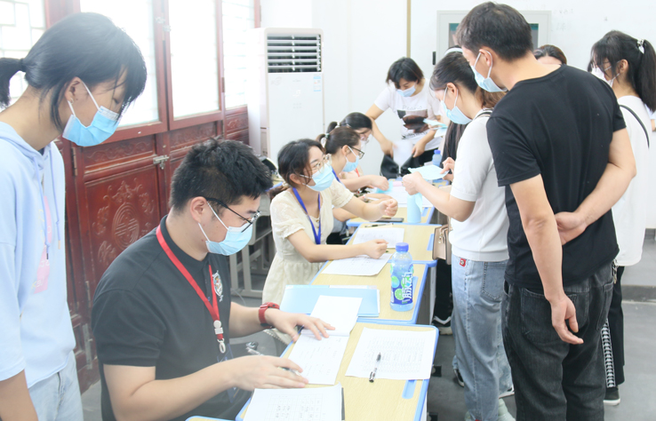 图为学生报到现场