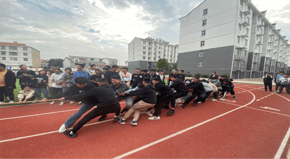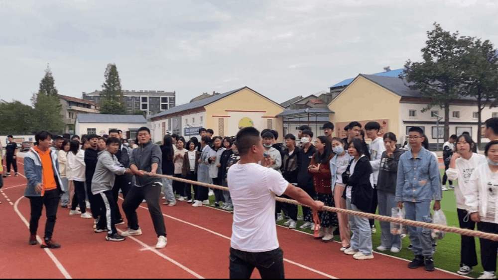 为丰富全体同学的精神文化生活,增进同学之间的友好交流,发扬团队合作精神,加强班集体凝聚力。10月9日,学校在操场举行第一届校园拔河比赛。