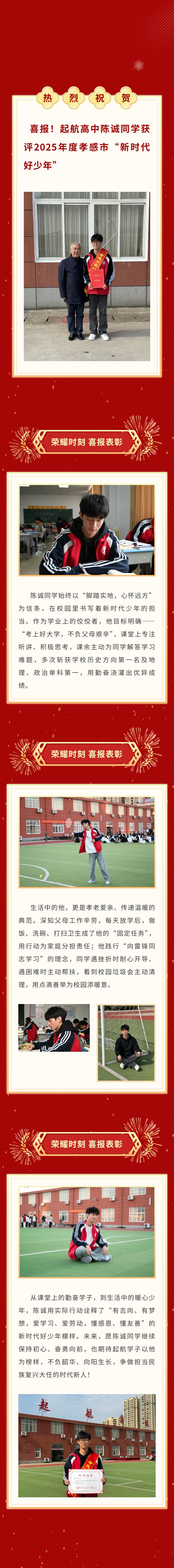 喜报!起航高中陈诚同学获评2025年度孝感市“新时代好少年”