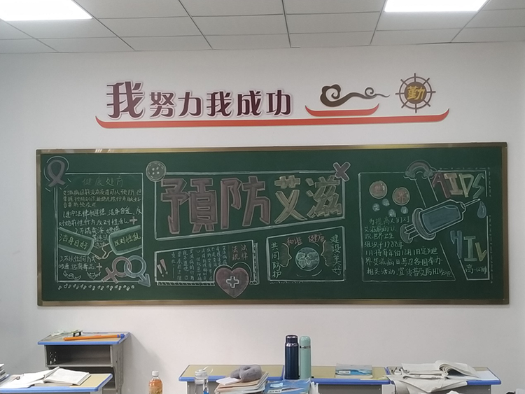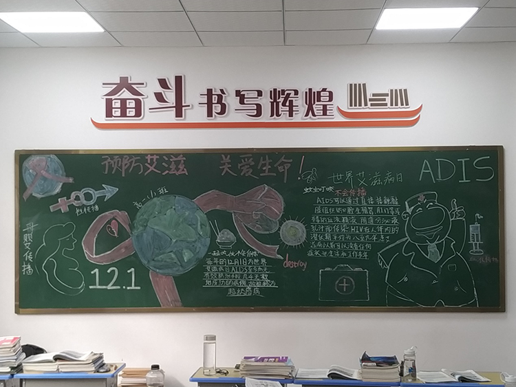 学校开展预防艾滋病宣传周,通过在校园内悬挂横幅,在各班开展专题黑板报,利用校园广播向全校师生普及